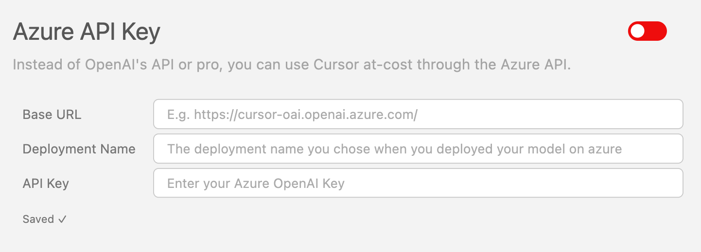 - Configure in Cursor Settings > Models > Azure OpenAI