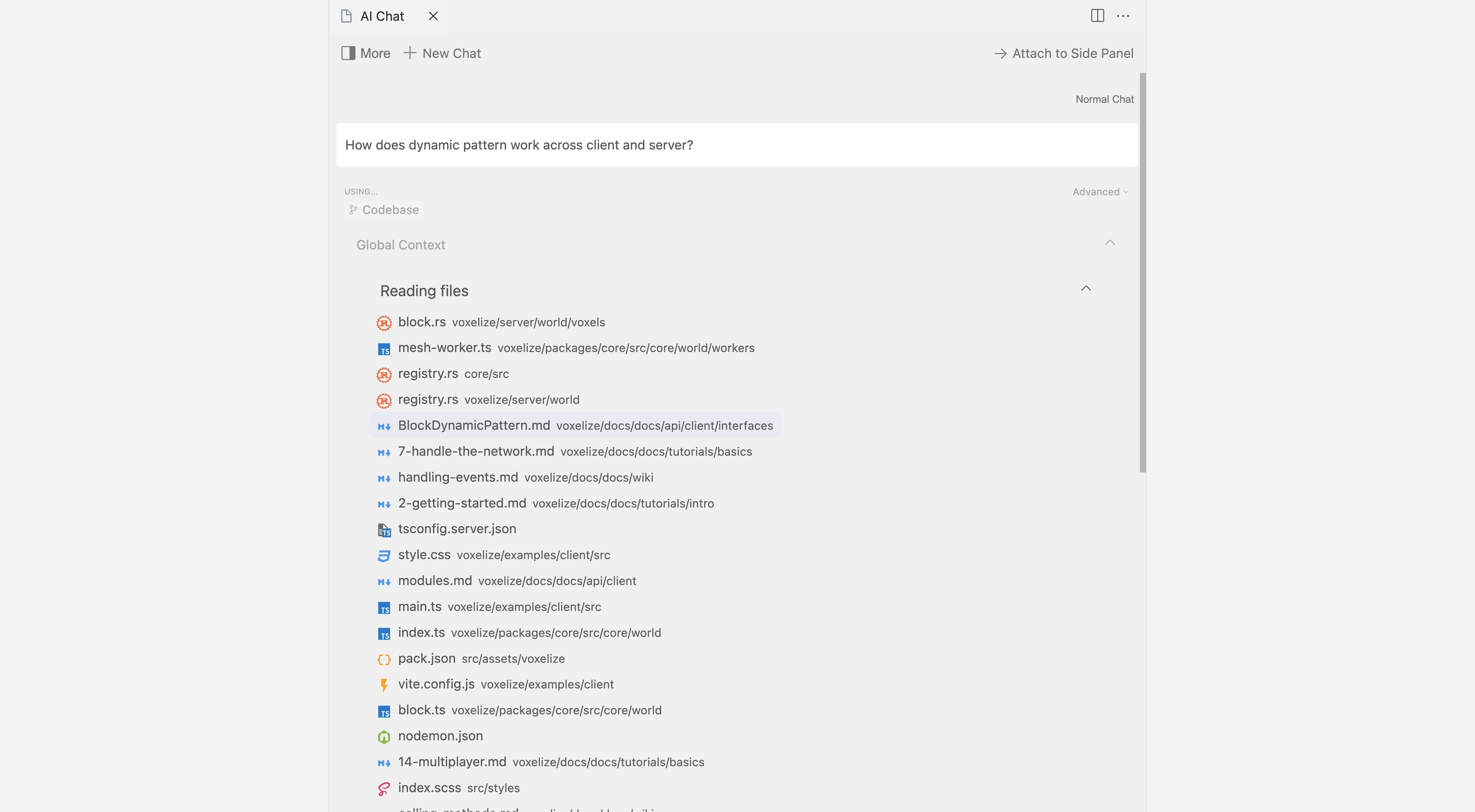 With codebase indexing, Cursor Chat can accurately generate responses based on your codebase.