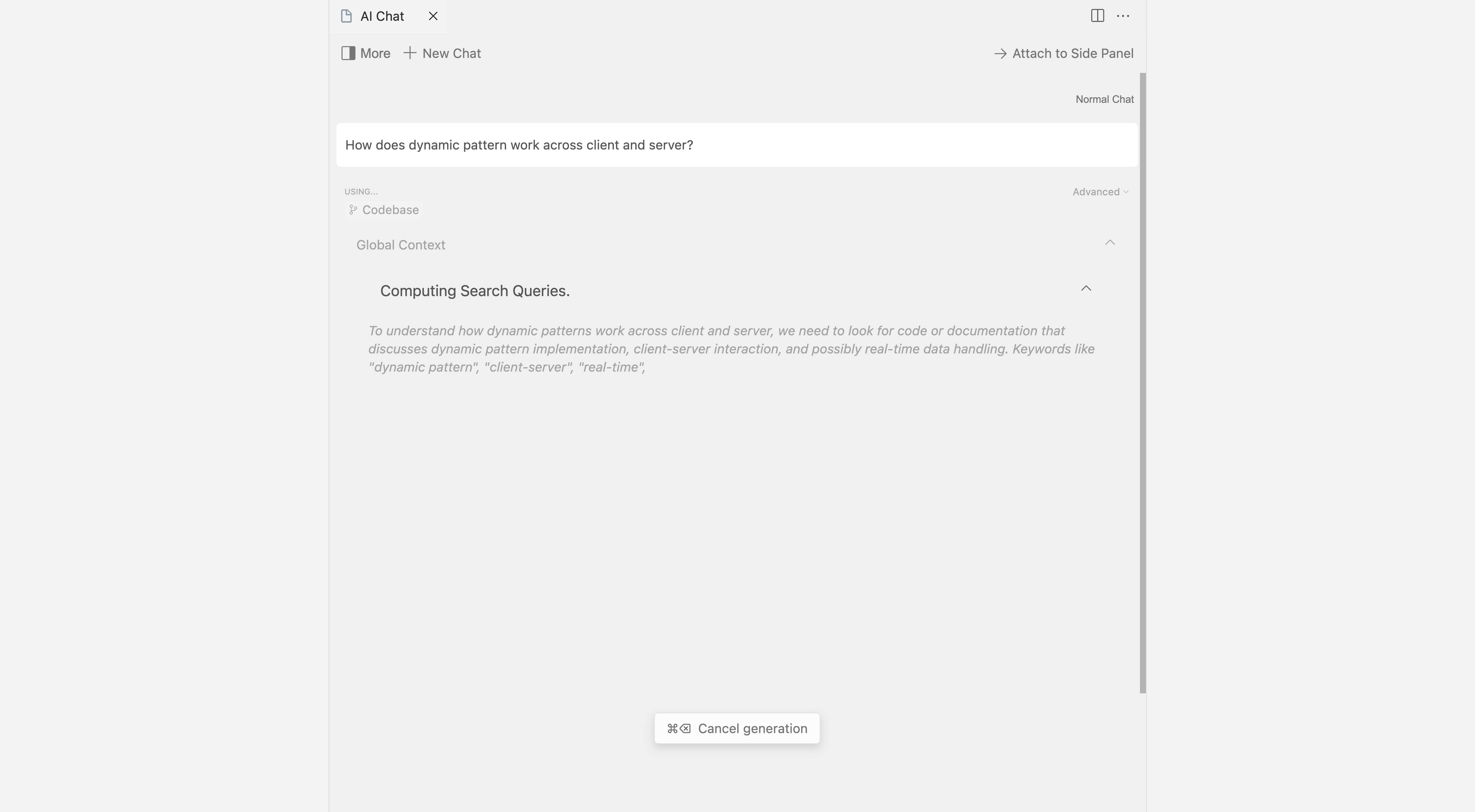 If a codebase isn't indexed, Cursor Chat will first attempt to compute a few search queries to be used to search across your codebase. For better accuracy, it's recommended to use embeddings search.