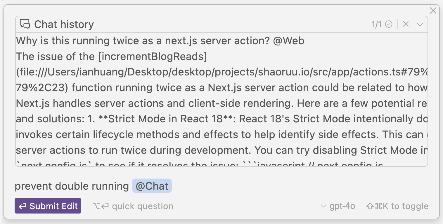 This is useful for when you have a conversation with the AI that you'd like to be applied to edit or generate code.