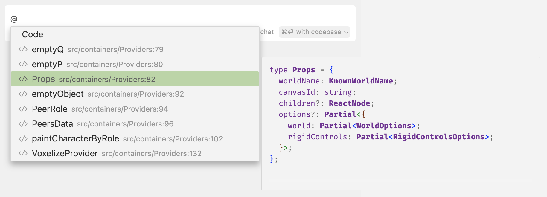Similar to the @Files symbol, Cursor will show a preview of the code's content so you can verify that the code you're referencing is the correct one.