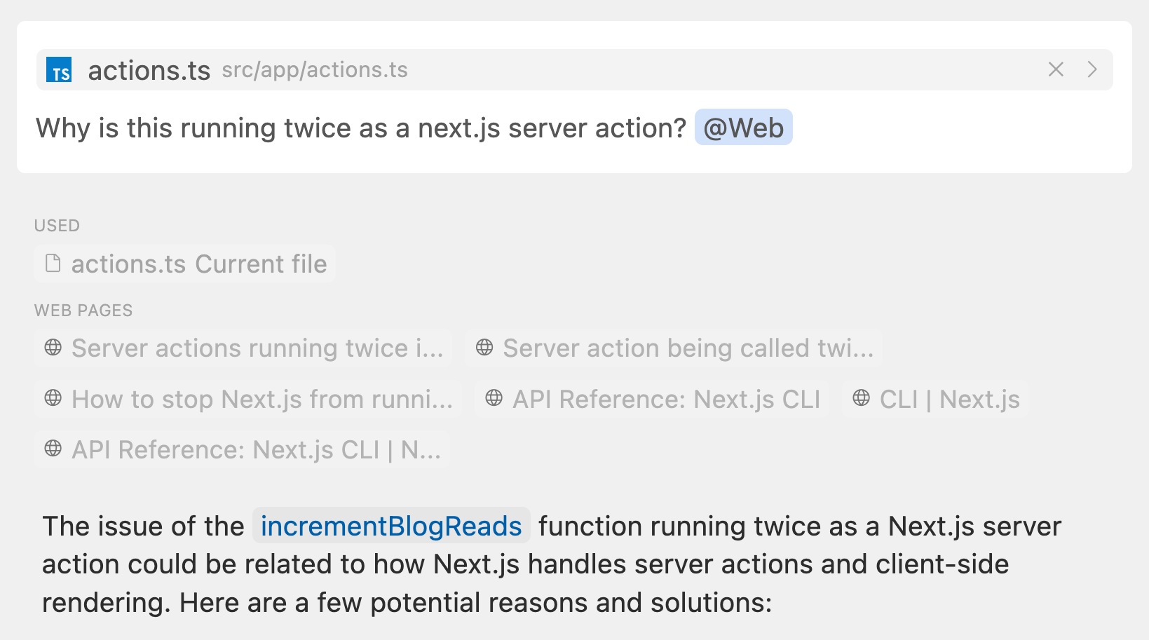 With @Web, Cursor constructs a search query based on the query and the context you've provided, and searches the web to